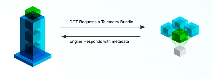DCT-based communication is lightweight, requiring simple commands or a small telemetry payload to facilitate most workflows. The below graphic demonstrates this style of communication: