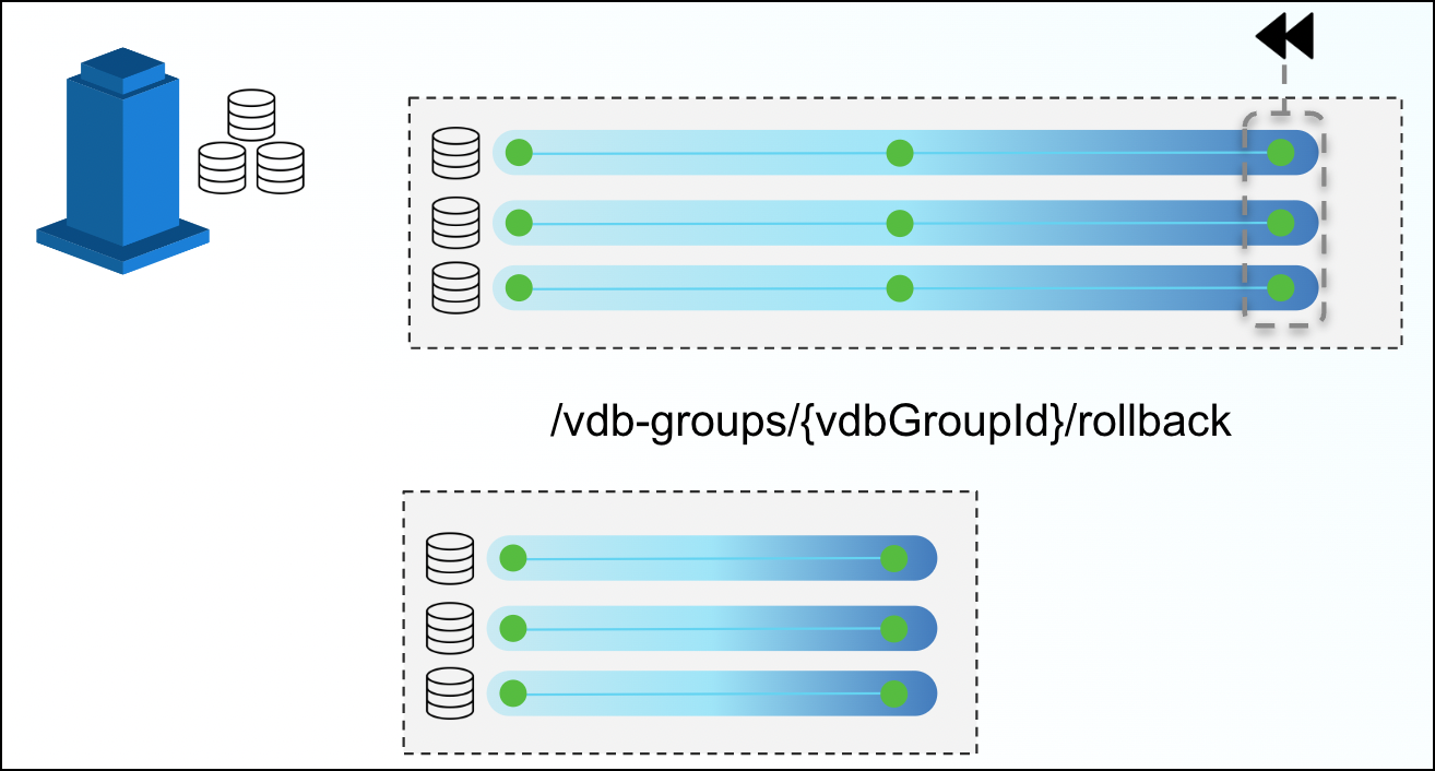 With VDB groups, developers can now maintain data synchronicity between all grouped VDBs, which is particularly useful for complex timeflow operations. For example, updating VDBs to reflect a series of schema changes across data sources, or to reflect an interesting event in all grouped datasets. In order to maintain synchronicity among grouped datasets, timeflow operations (refresh, rewind, etc.) must use a bookmark reference.