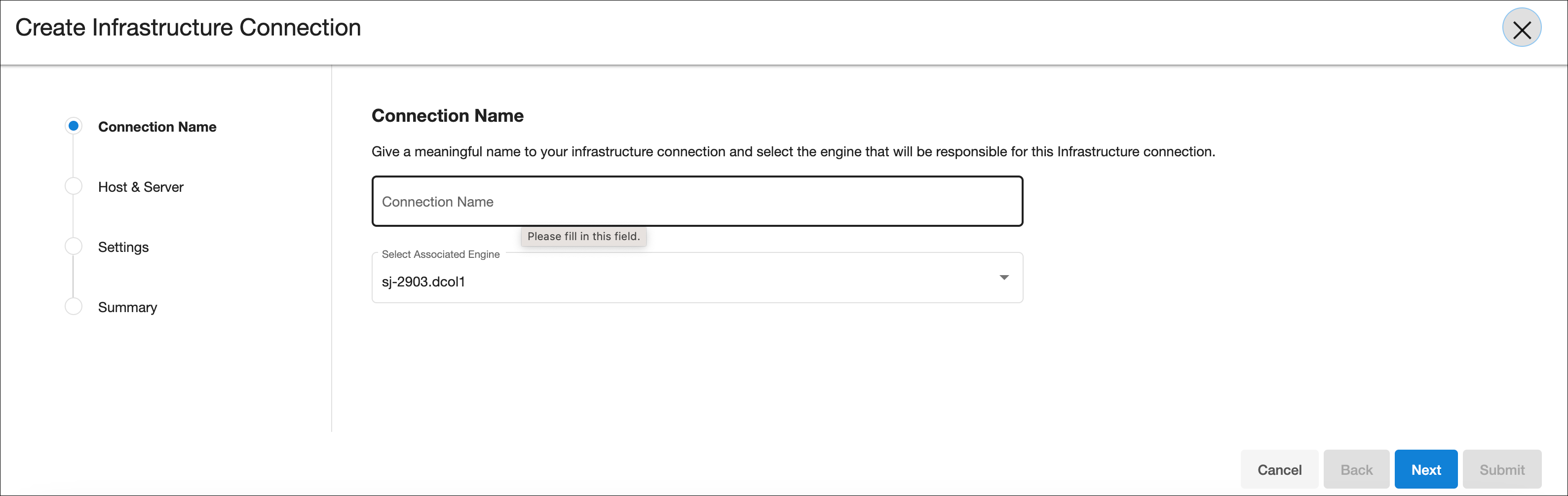 Infrastructure connection wizard steps