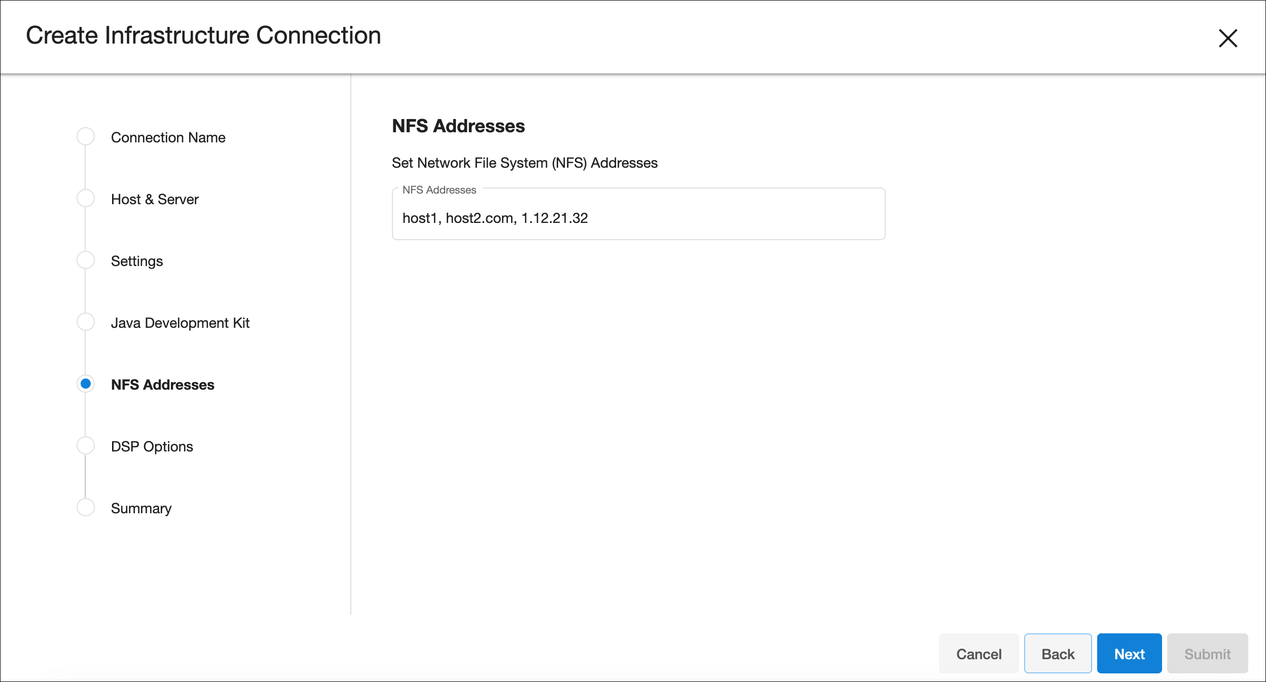 Set NFS addresses in the corresponding text field (comma separated).