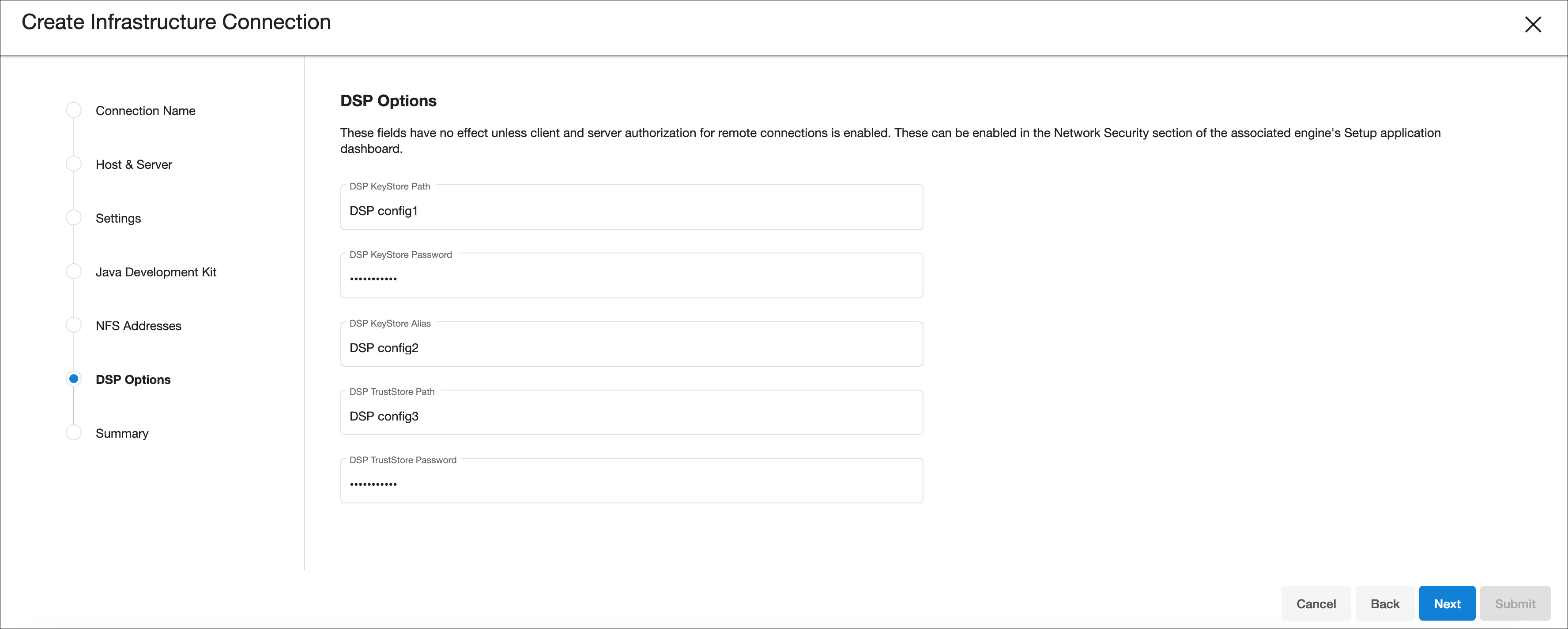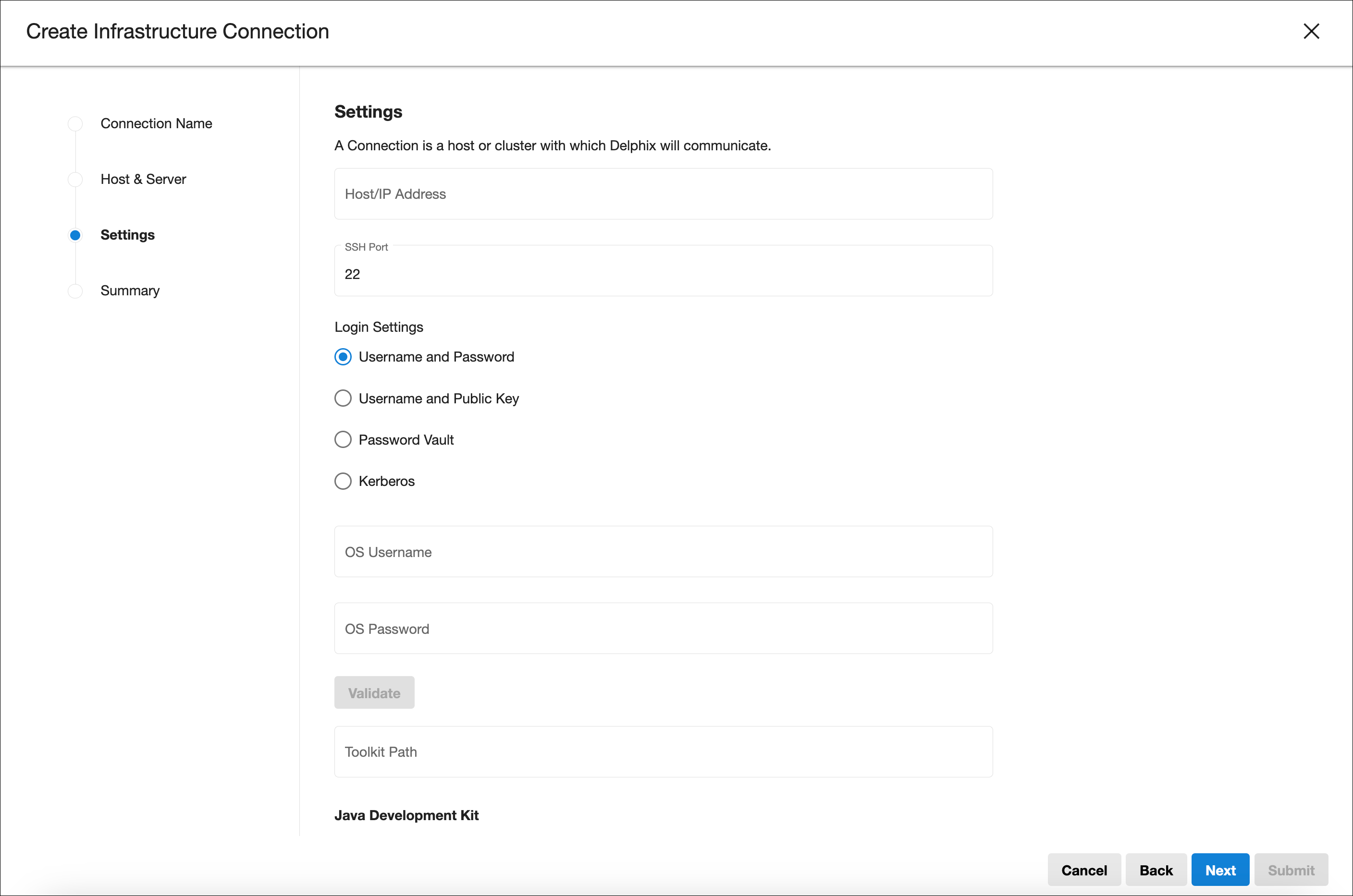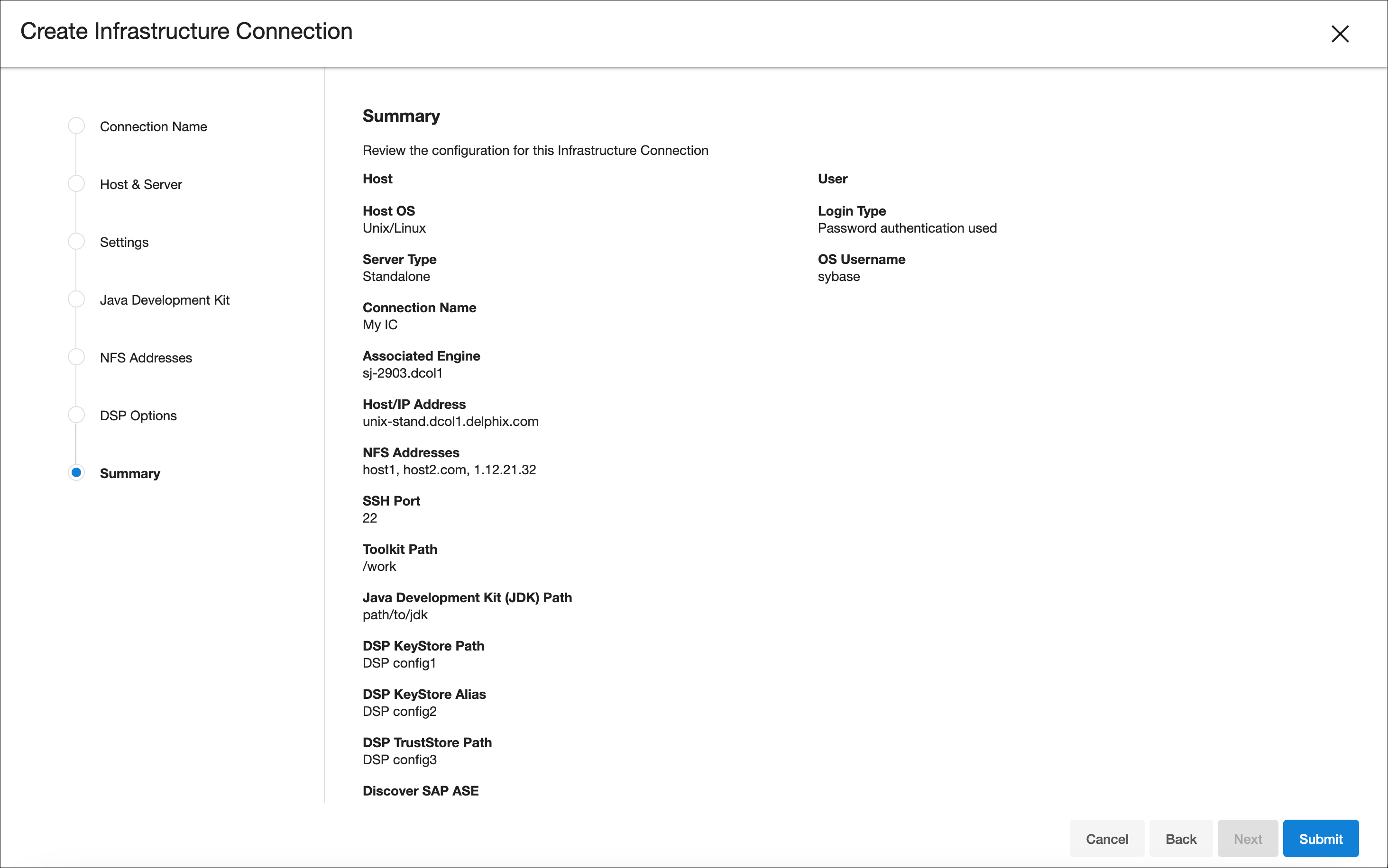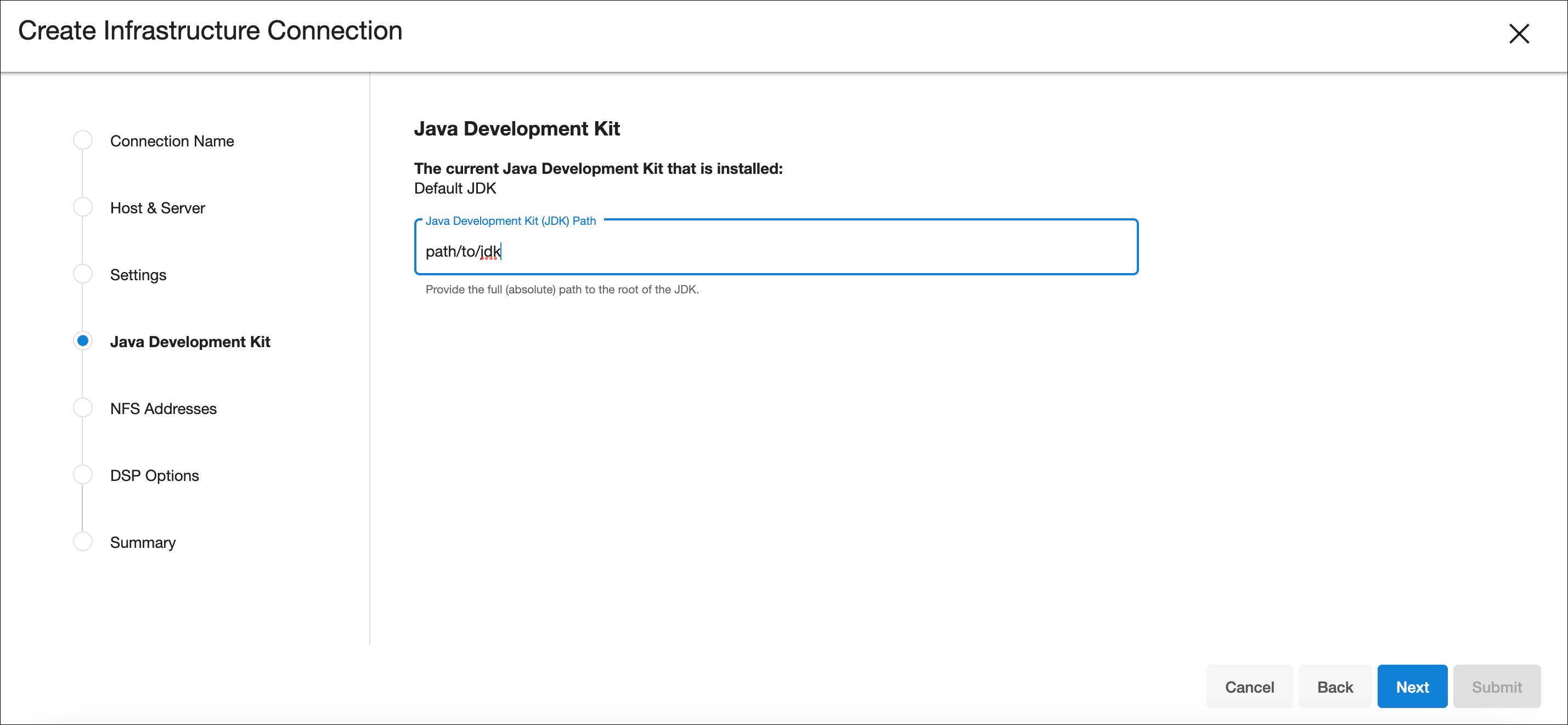 Infrastructure connection wizard steps