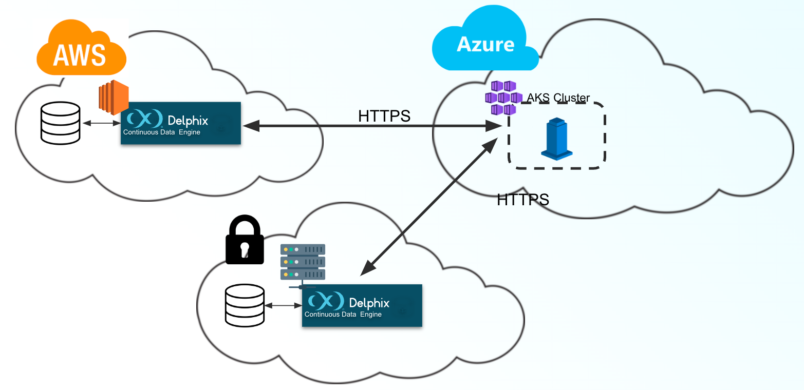 DCT is multi-cloud enabled, which means that a single DCT instance can be deployed to orchestrate (via HTTPS) Continuous Data and Continuous Compliance workloads with Delphix Engines located in other networks. Alternatively, DCT can be localized to engines located within a network. DCT is a lightweight management application, which means that it does not require a highly performant connection to complete its work and can serve as a central management layer for Delphix Engines globally.