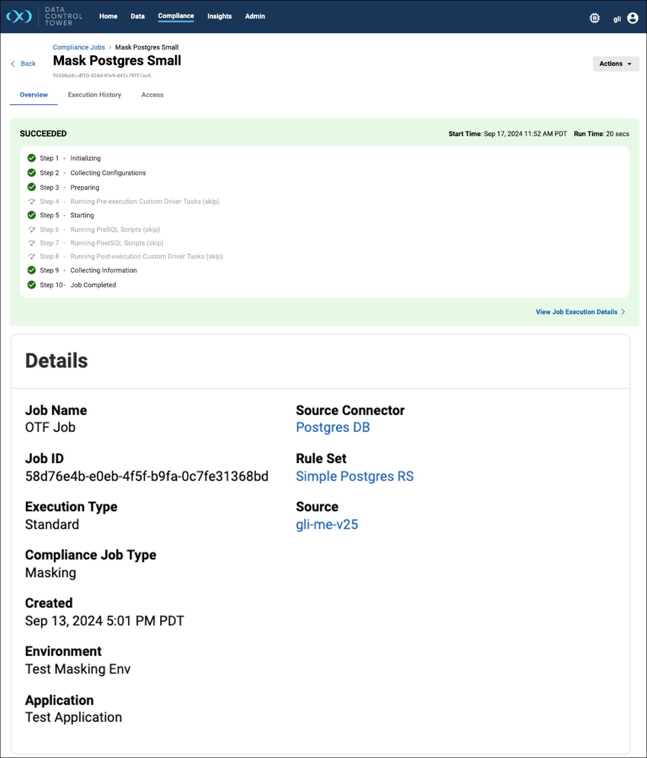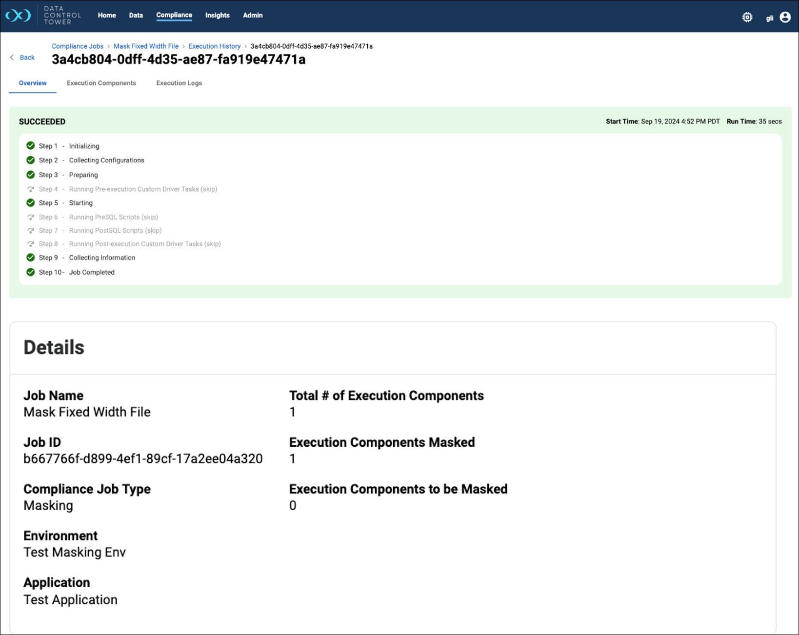 This feature introduces a new UI for compliance job execution details. In the Compliance Job Execution History list, each execution has a View button, which will take you to the details page for that execution.