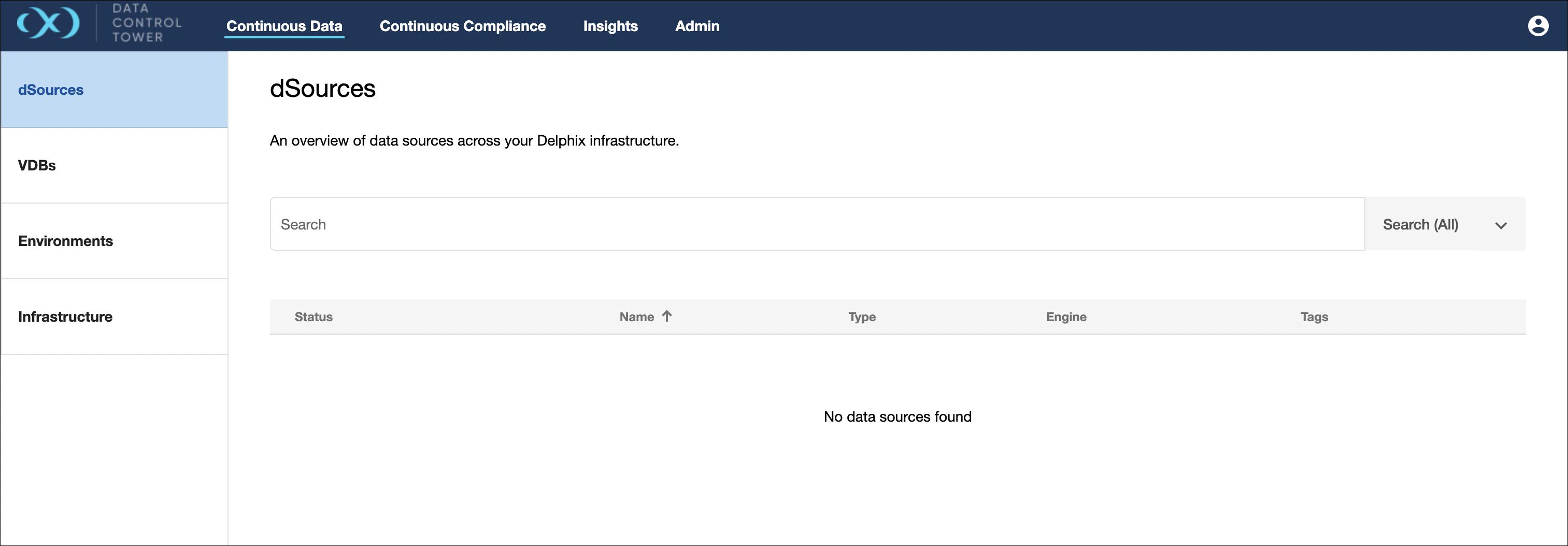 The screenshot below shows a global list view of all connected dSources.
