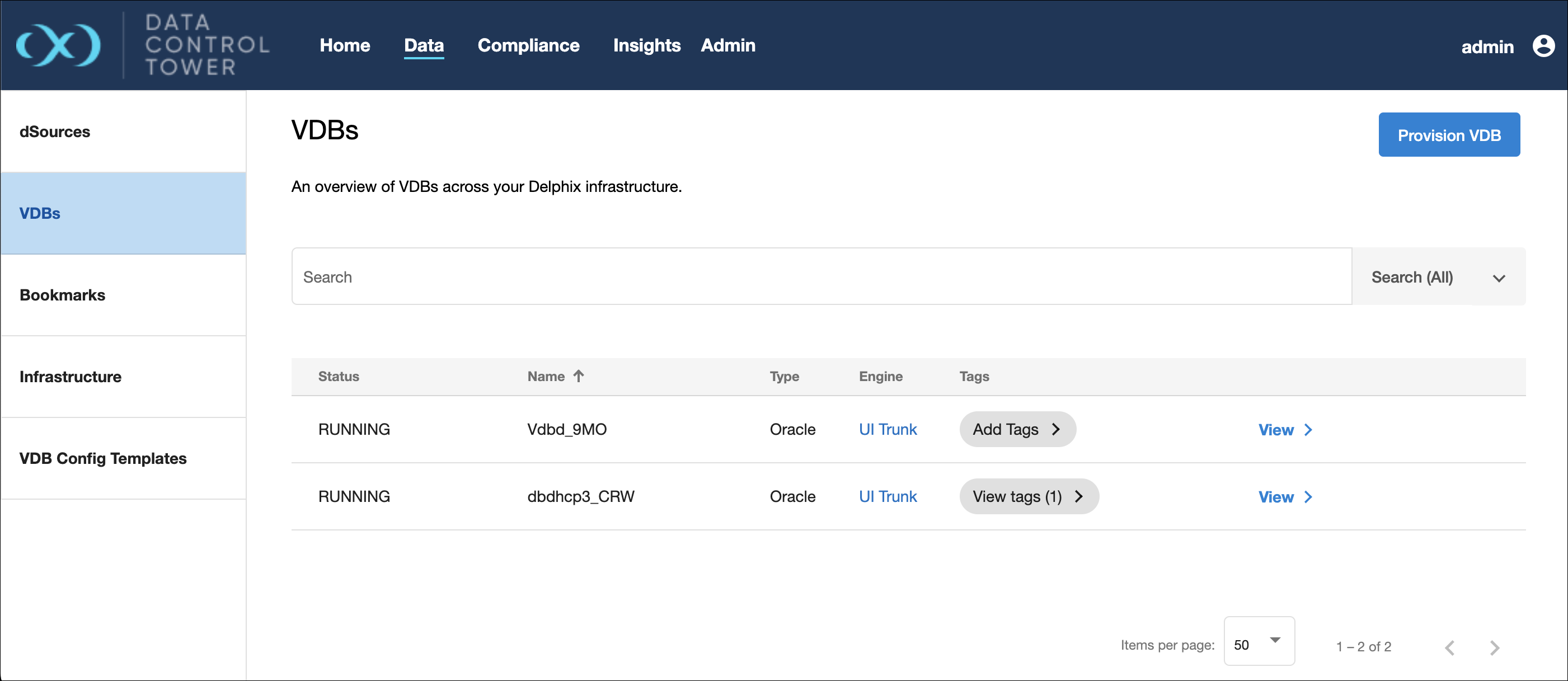 Users will only be able to see VDBs if they have been granted access via the Access Control system.
