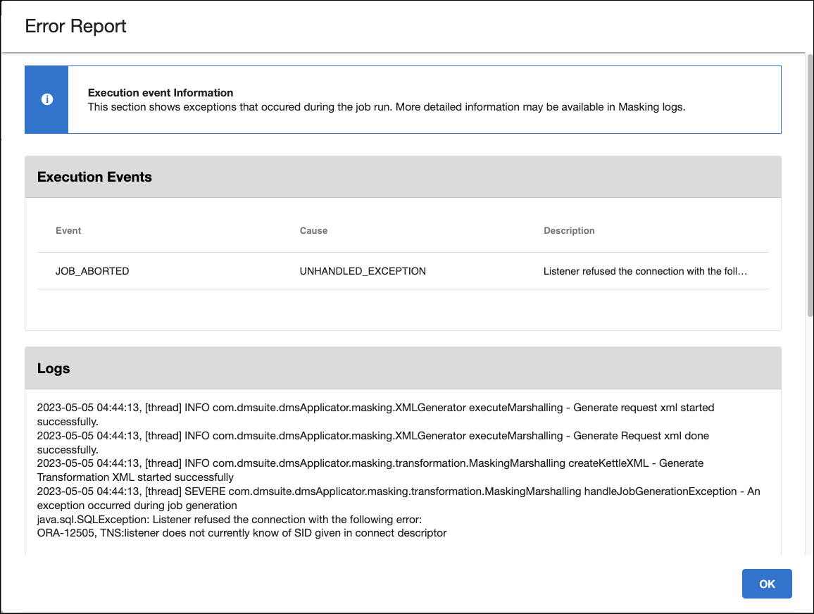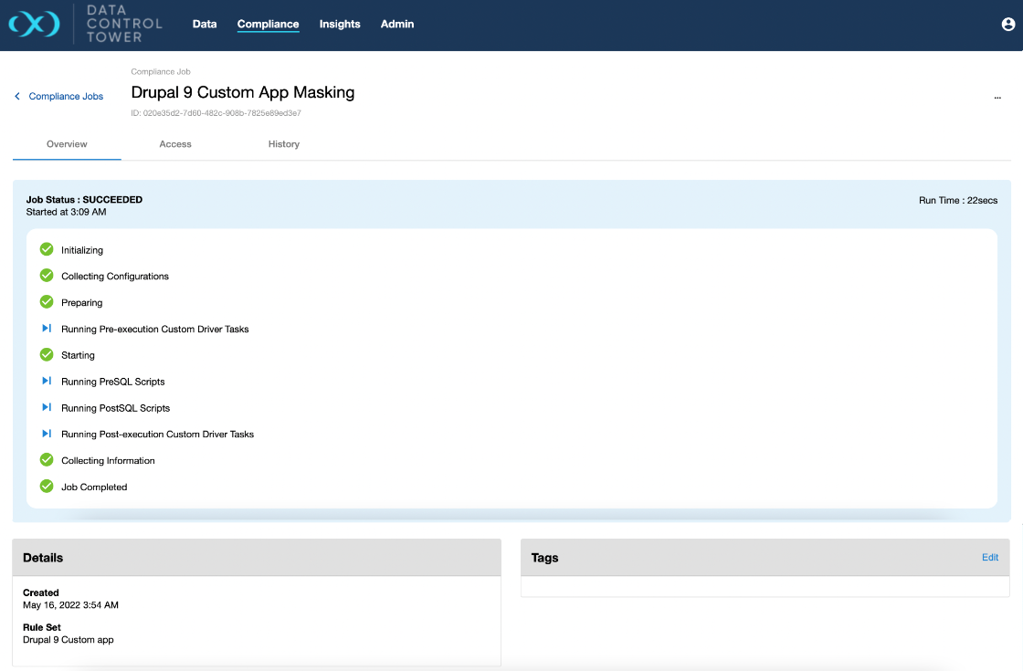 Compliance job execution details