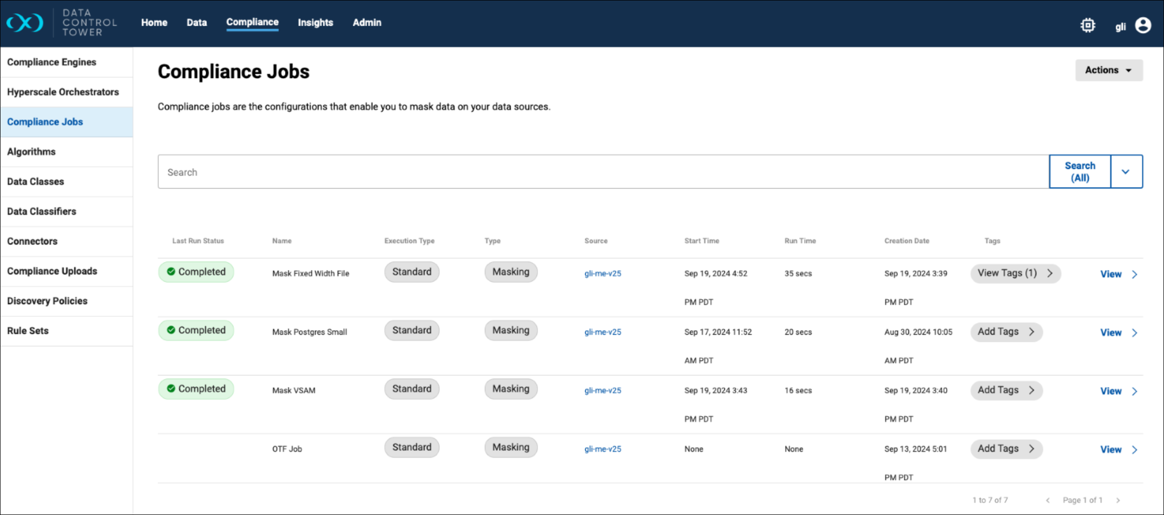 Compliance Job Type (Masking, Discovery, Tokenization, or Re-Identification)