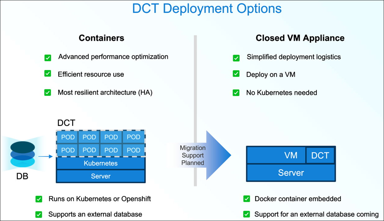Data Control Tower is a container-based architecture that can be deployed with Kubernetes, OpenShift, or deployed via virtual appliance (OVA image).