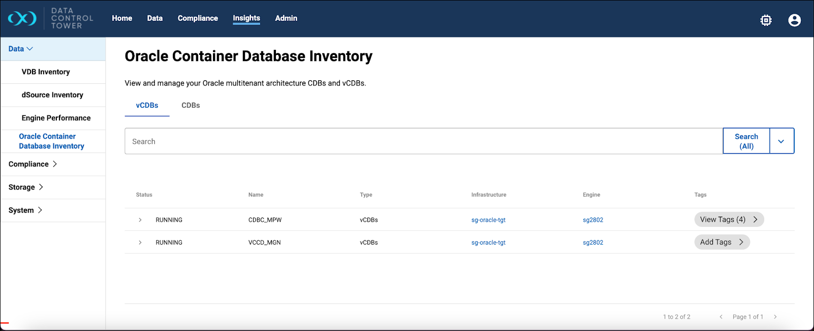 This report provides a comprehensive list of all Container Databases (CDBs) and virtual Container Databases (vCDBs). This report features an expandable list that reveals pluggable data associated with each CDB or vCDB, providing in-depth visibility into your Oracle database environment at a glance.