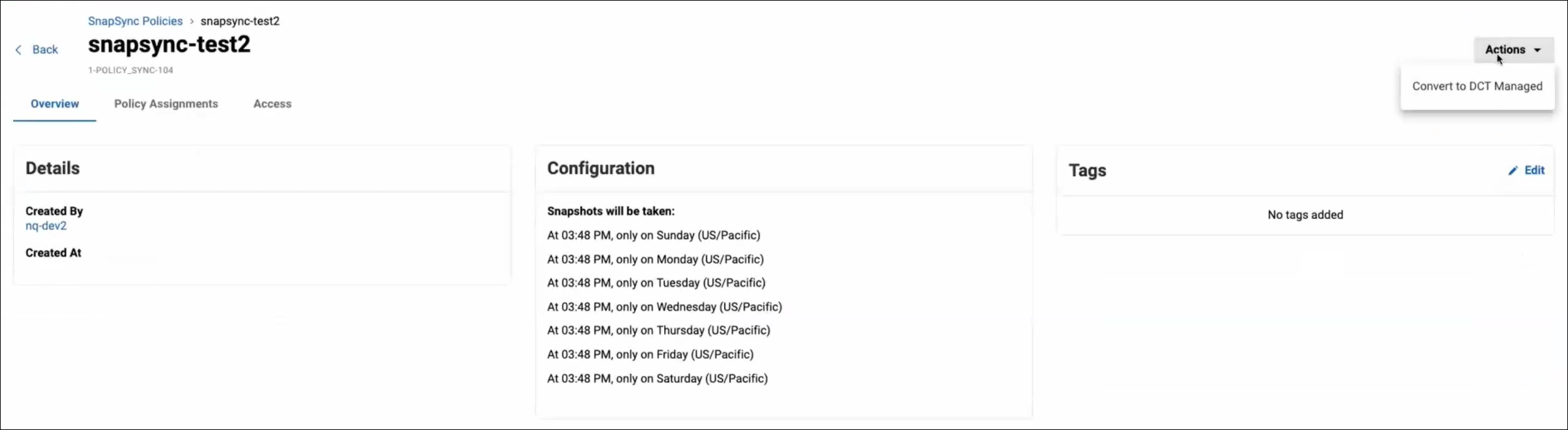 To convert an existing Delphix Engine policy into a DCT Managed policy: