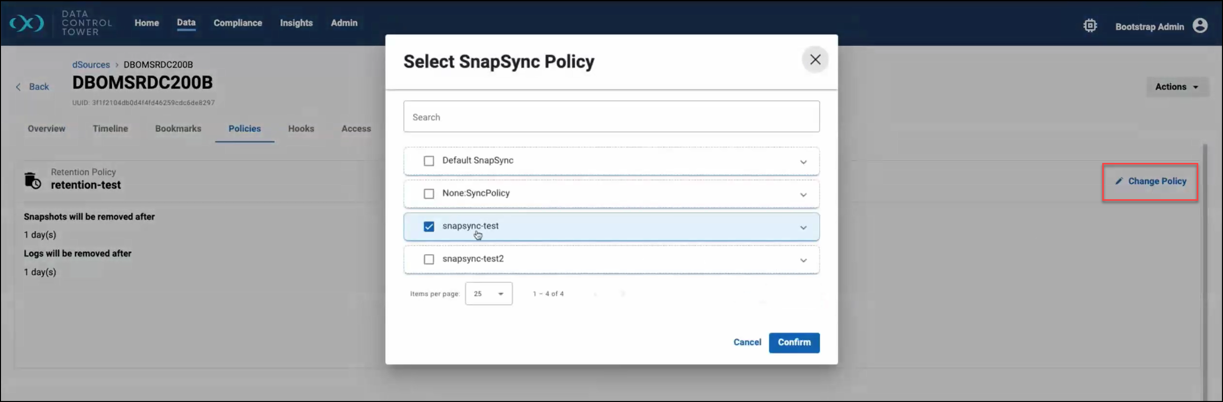 In the dSource/VDB details page, a new Policies tab has been added likewise, which all policies associated with the selected dSource/VDB.